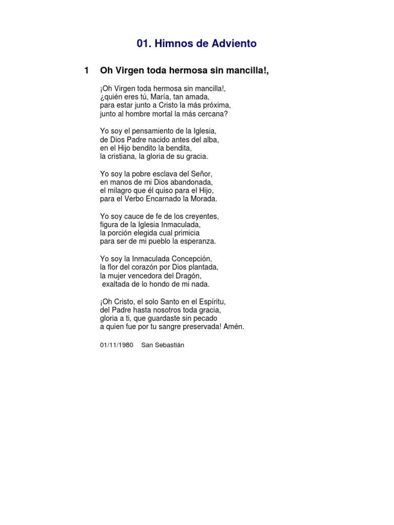 Los cuatro himnos "Vendrá con gran poder, con fuerte gloria" (Adviento I); "Trae el desierto voces de