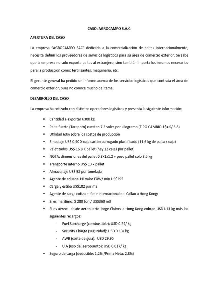 La empresa “AGROCAMPO SAC” dedicada a la comercialización de paltas internacionalmente,