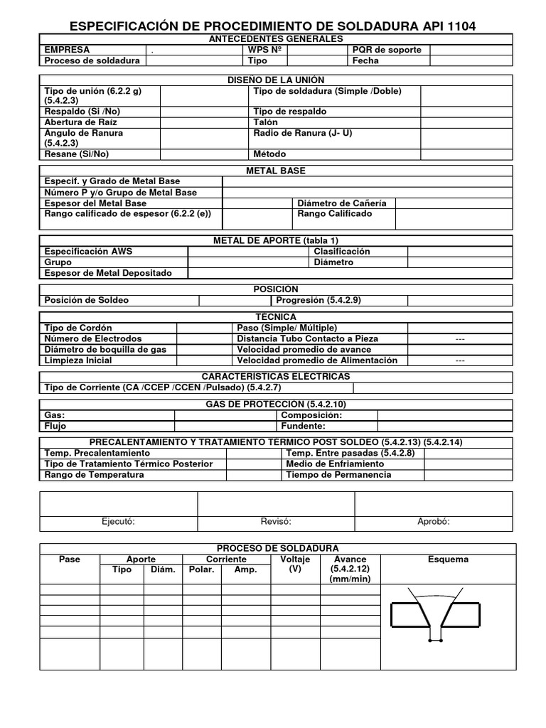 ESPECIFICACIÓN DE PROCEDIMIENTO DE SOLDADURA API 1104
