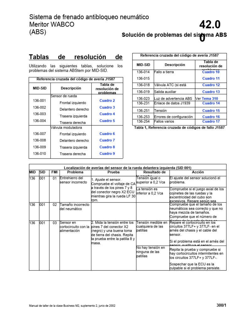 Válvula moduladora Tabla 1, Referencia cruzada de códigos de fallo J1587