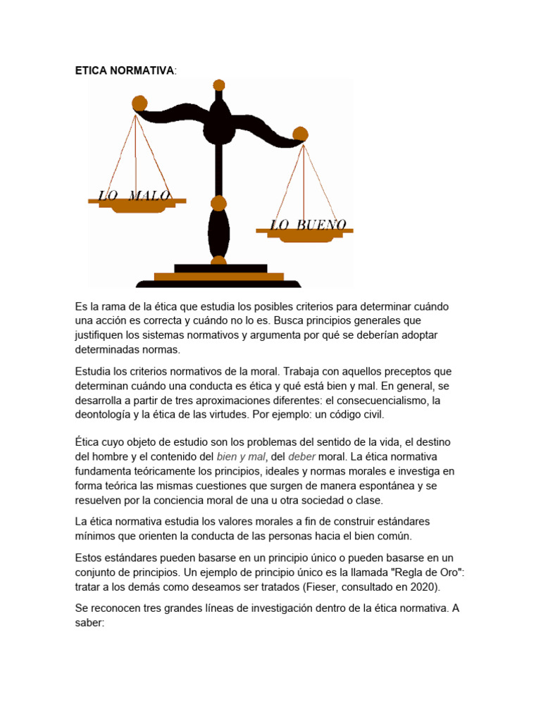 del hombre y el contenido del bien y mal, del deber moral. La ética normativa