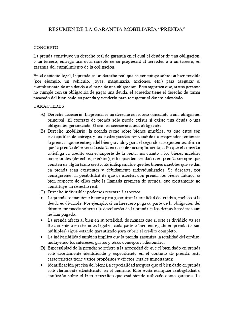 RESUMEN DE LA GARANTIA MOBILIARIA “PRENDA”