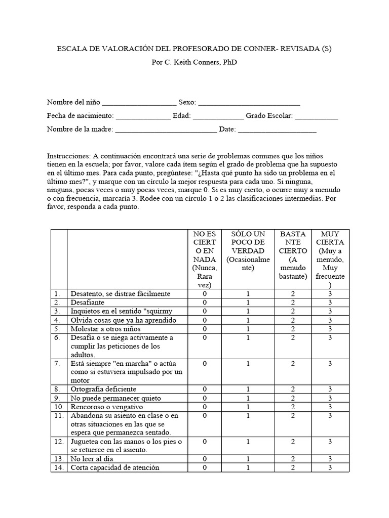 ESCALA DE VALORACIÓN DEL PROFESORADO DE CONNER- REVISADA (S)