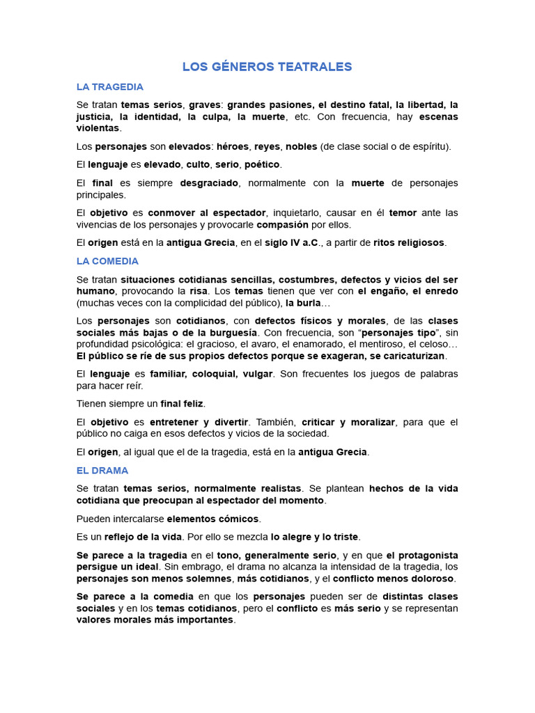 LOS GÉNEROS TEATRALES