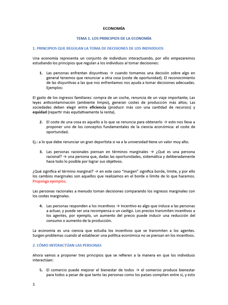 1. Las personas enfrentan disyuntivas → cuando tomamos una decisión sobre algo en