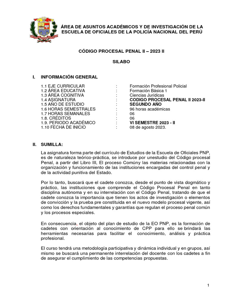 1.4 ASIGNATURA : CODIGO PROCESAL PENAL II 2023-II