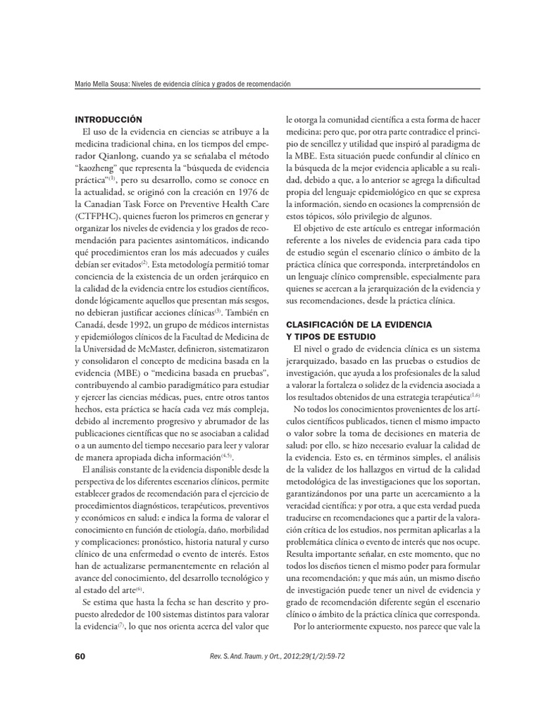 investigación clínica a la que se refiera. Por una parte, puestas de jerarquización de la evidencia más utilizada