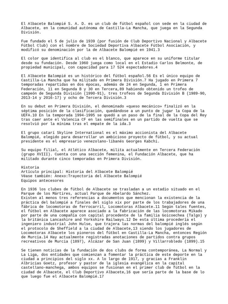 ciudad de Albacete, el Club Deportivo Albacete,16 que sería parte de la base de lo