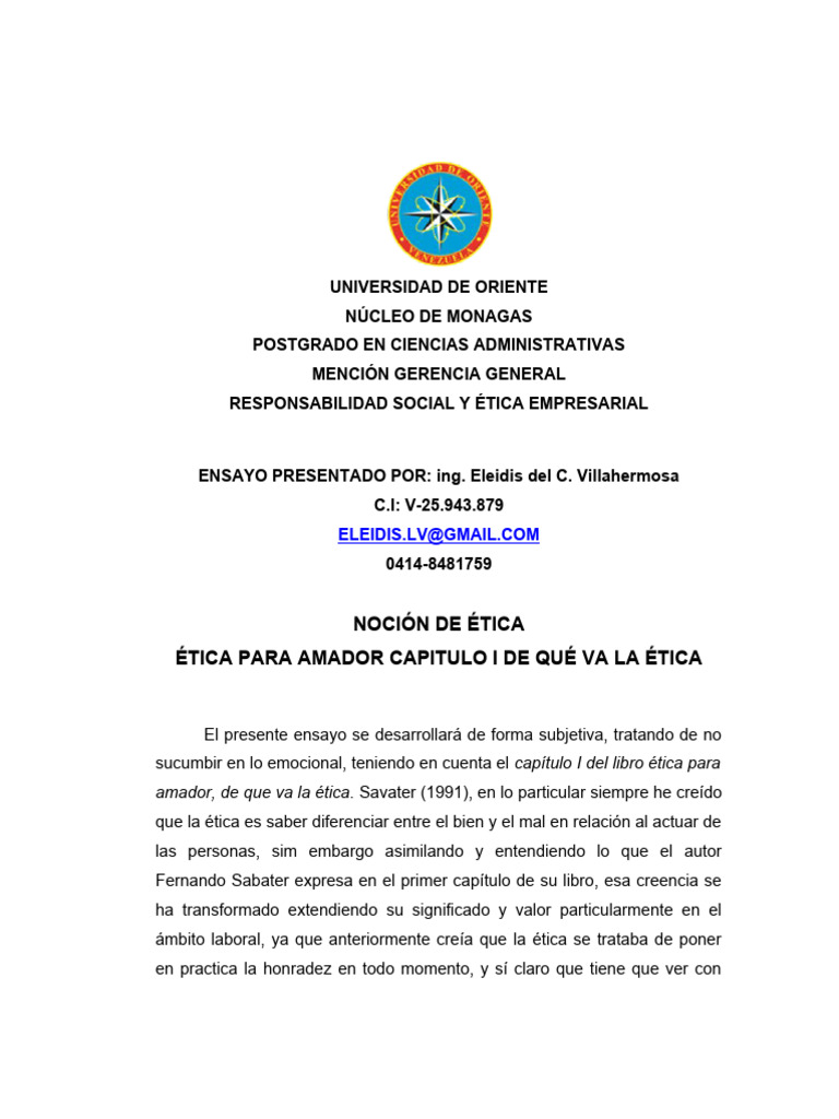 En conclusión el primer capítulo del libre ética para Amador estimula e