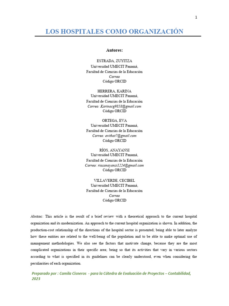 como son los hospitales como organización y su relación producción costos.