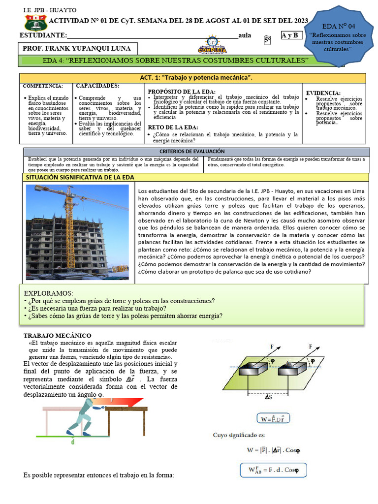 ACTIVIDAD N° 01 DE CyT. SEMANA DEL 28 DE AGOST AL 01 DE SET DEL 2023