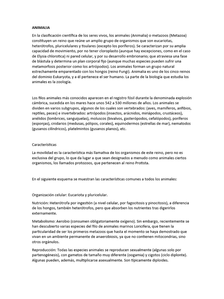 heterótrofos, pluricelulares y tisulares (excepto los poríferos). Se caracterizan por su amplia