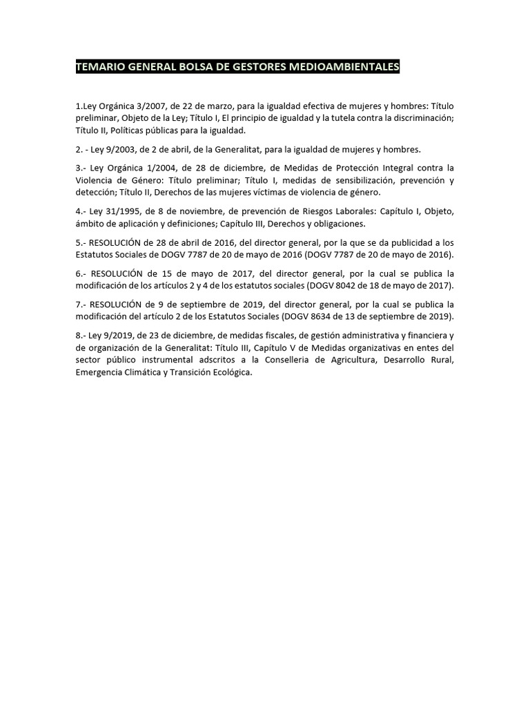 TEMARIO GENERAL BOLSA DE GESTORES MEDIOAMBIENTALES