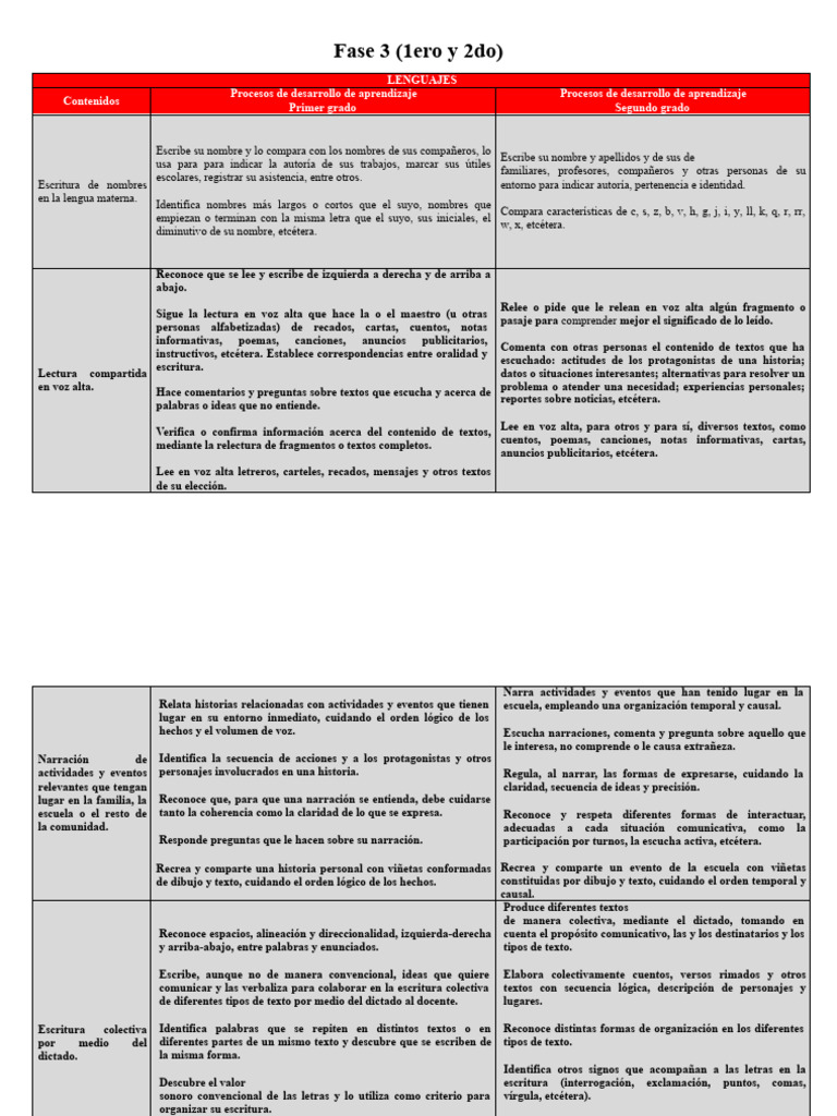 Desarrollo de Lenguaje en Primer y Segundo Grado