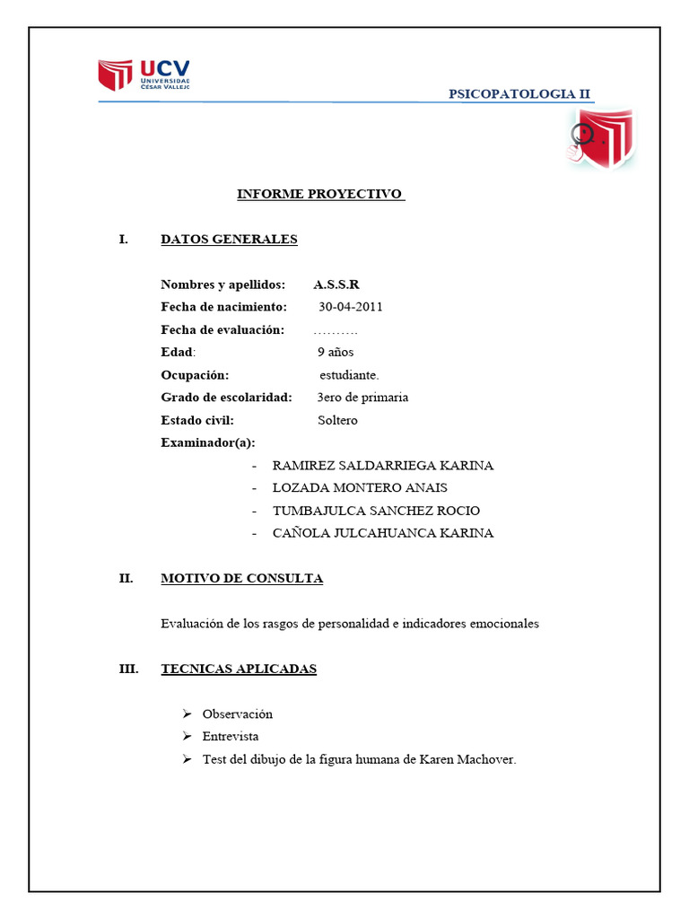 El paciente A.S.S.R de 9 años de edad denota ser una persona