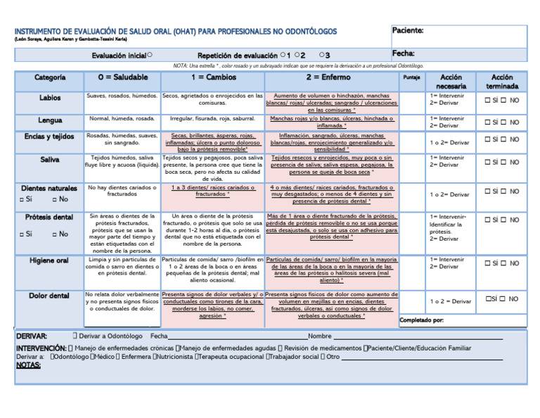 INSTRUMENTO DE EVALUACIÓN DE SALUD ORAL (OHAT) PARA PROFESIONALES NO ODONTÓLOGOS Paciente: