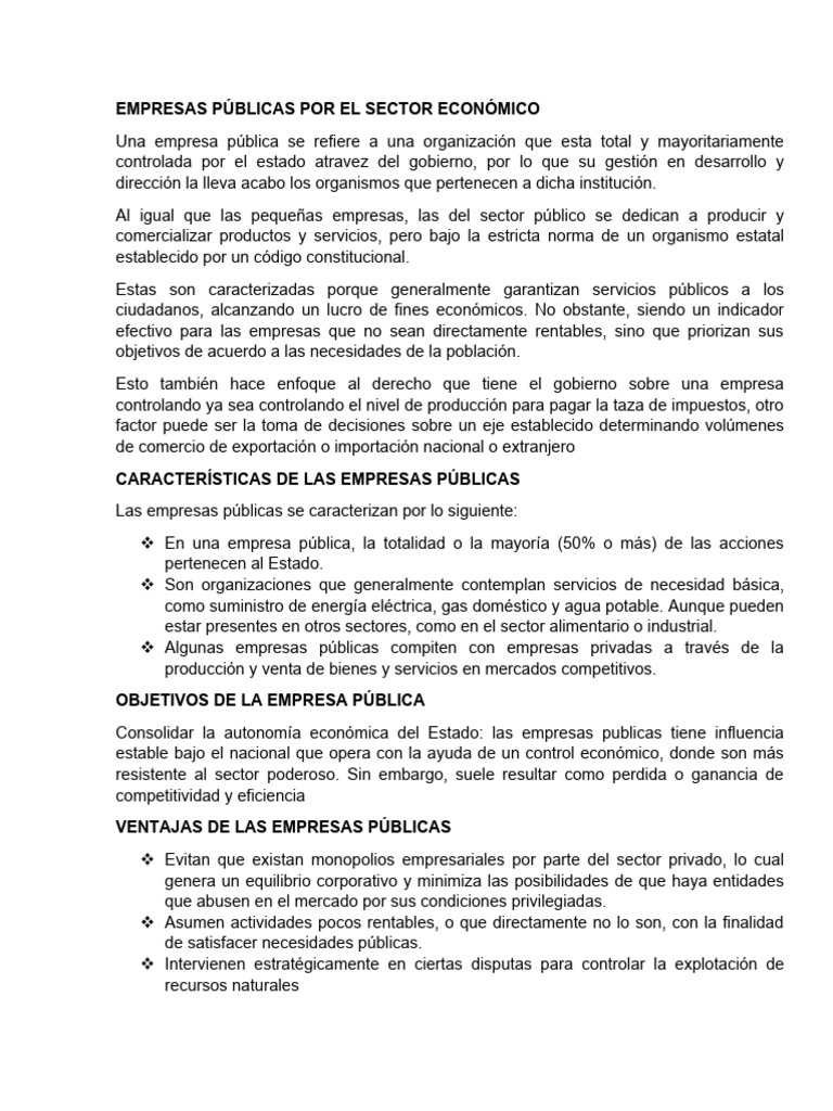 CARACTERÍSTICAS DE LAS EMPRESAS PÚBLICAS