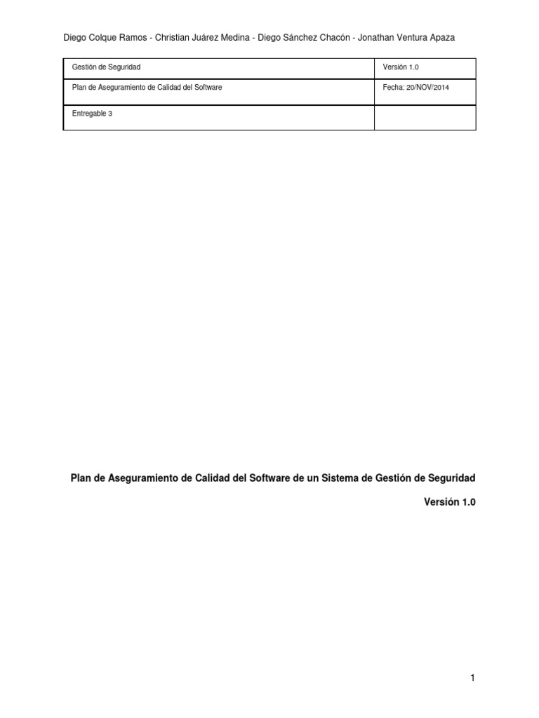 Este documento contiene el Plan de Aseguramiento de la Calidad [SQAP] para el proyecto