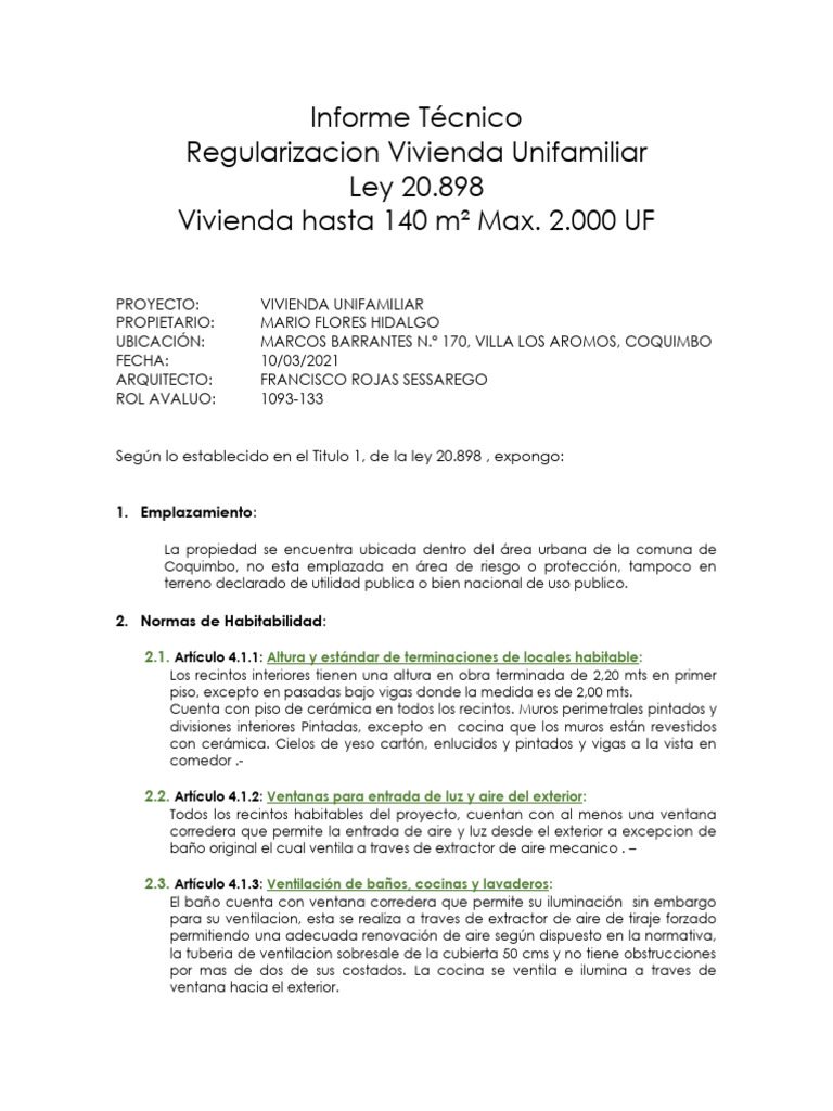 20.898 y lo establecido en la letra F, numeral 2.2 de la DDU 302. La vivienda no