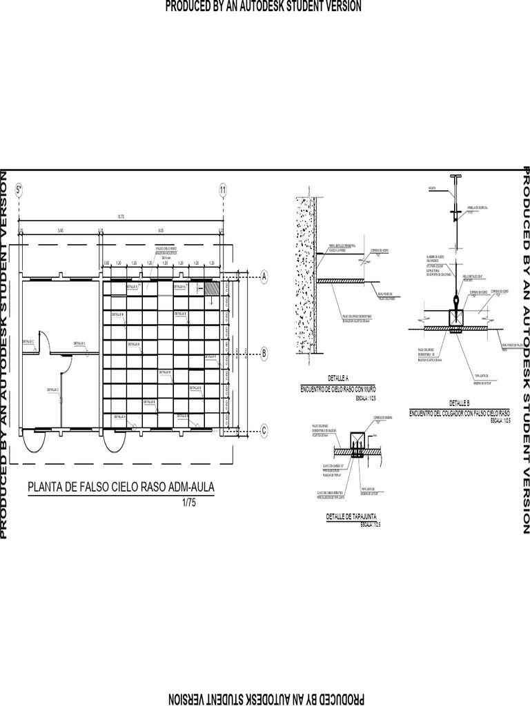 PLANTA DE FALSO CIELO RASO ADM-AULA CLAVO SIN CABEZA EMBUTIDO