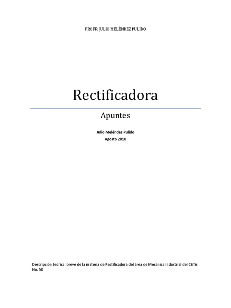 Descripcin terica breve de la materia de Rectificadora del rea de Mecnica Industrial del CBTis No. 50