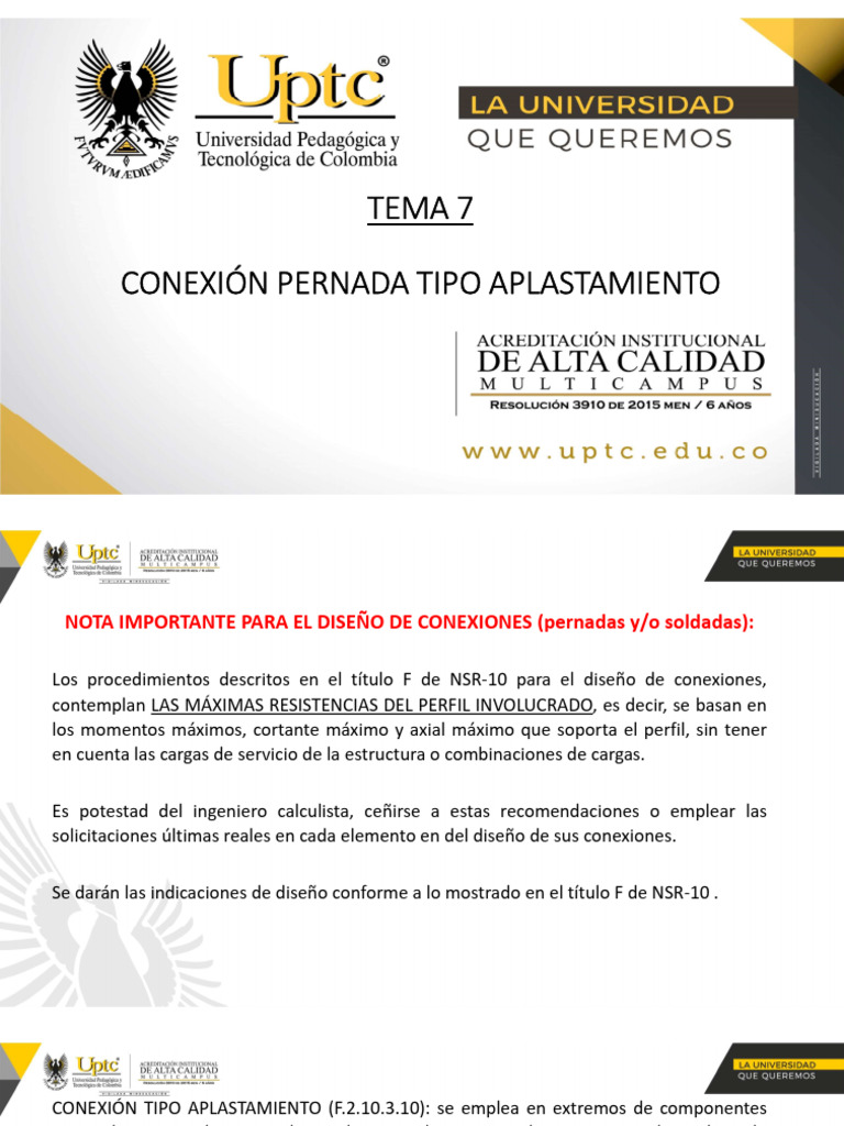 NOTA IMPORTANTE PARA EL DISEÑO DE CONEXIONES (pernadas y/o soldadas):