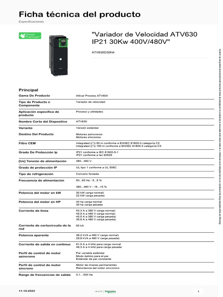 "Variador de Velocidad ATV630