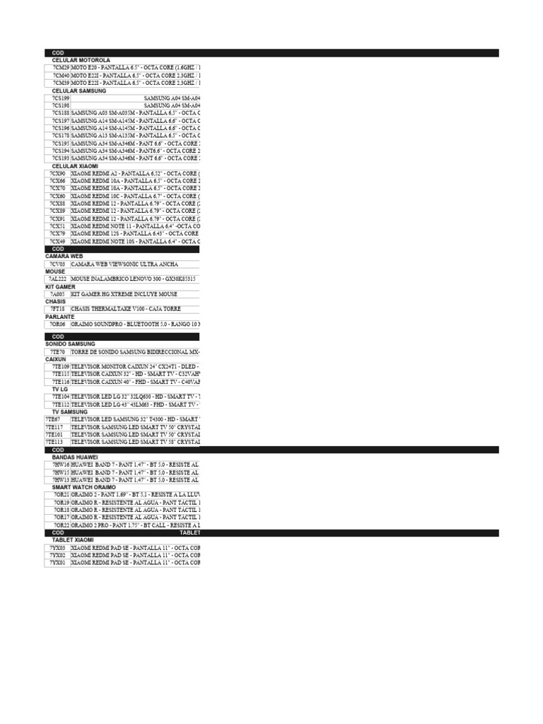 COD TABLETS (EXCLUIDAS DE IVA / PERSONA NATURAL ( PERSONA JURIDICA + 2% ) Precio