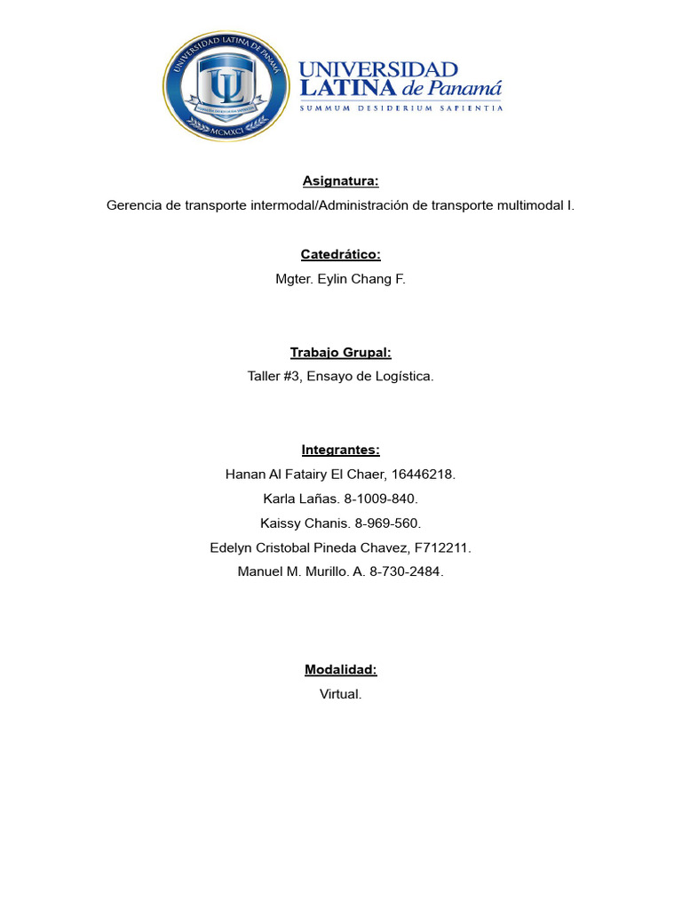 Gerencia de transporte intermodal/Administración de transporte multimodal I.