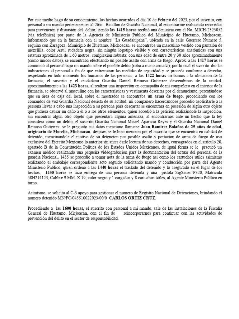 numero detenido MN/FC/045510022023/00/0 CARLOS ORTIZ CRUZ.