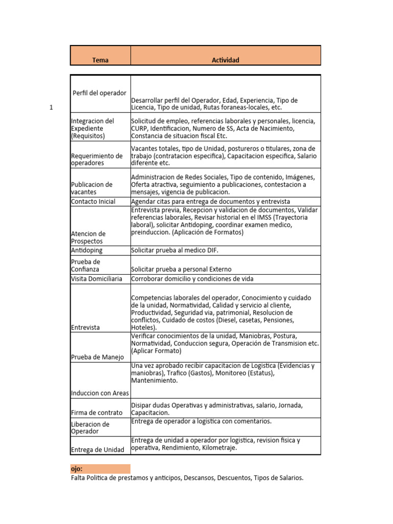 Cual es la necesidad de operadores?, Se deben de captar 3 para que se quede