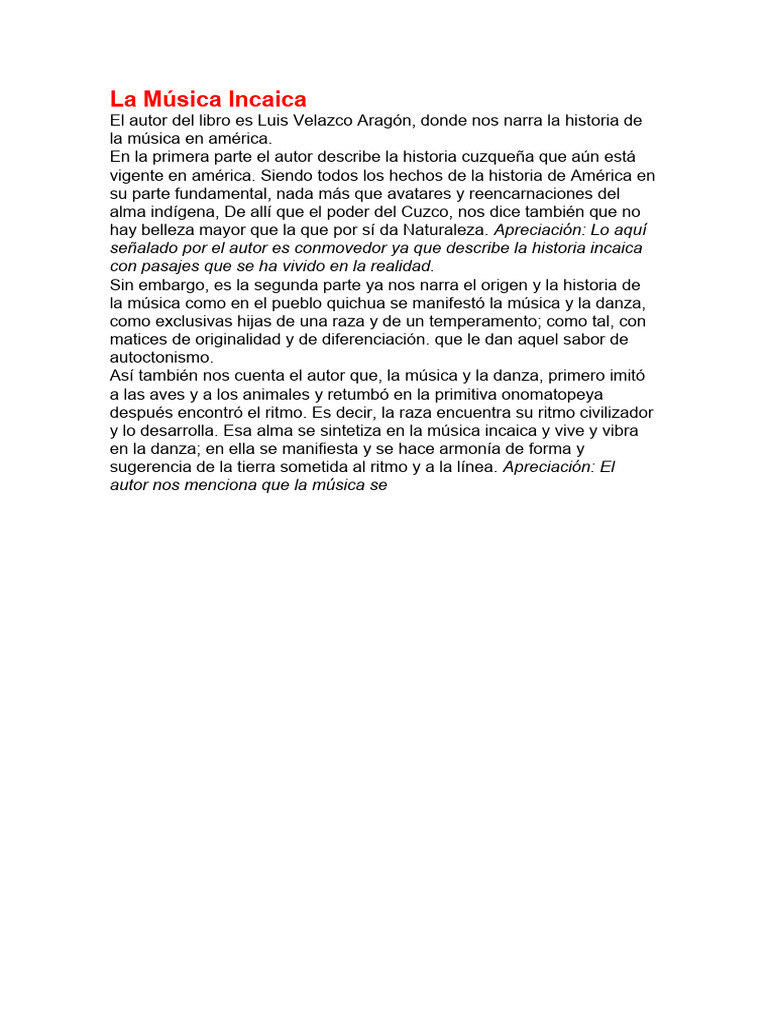 nuestro país como es el Huayno y por ultimo nos relata cómo nuestra