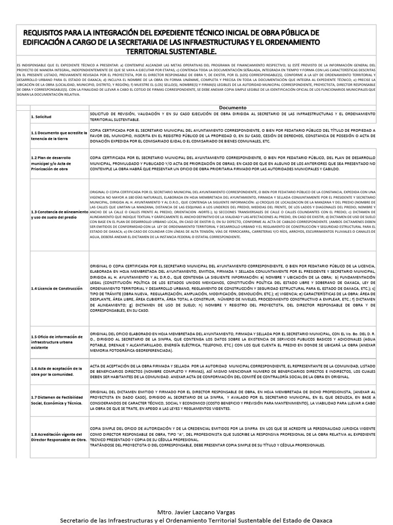 REQUISITOS PARA LA INTEGRACIÓN DEL EXPEDIENTE TÉCNICO INICIAL DE OBRA PÚBLICA DE