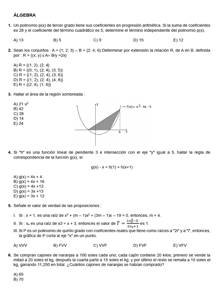 1. Un polinomio p(x) de tercer grado tiene sus coeficientes en progresión aritmética. Si la suma de coeficientes