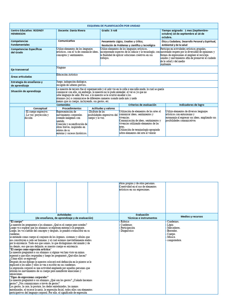 ESQUEMA DE PLANIFICACIÓN POR UNIDAD