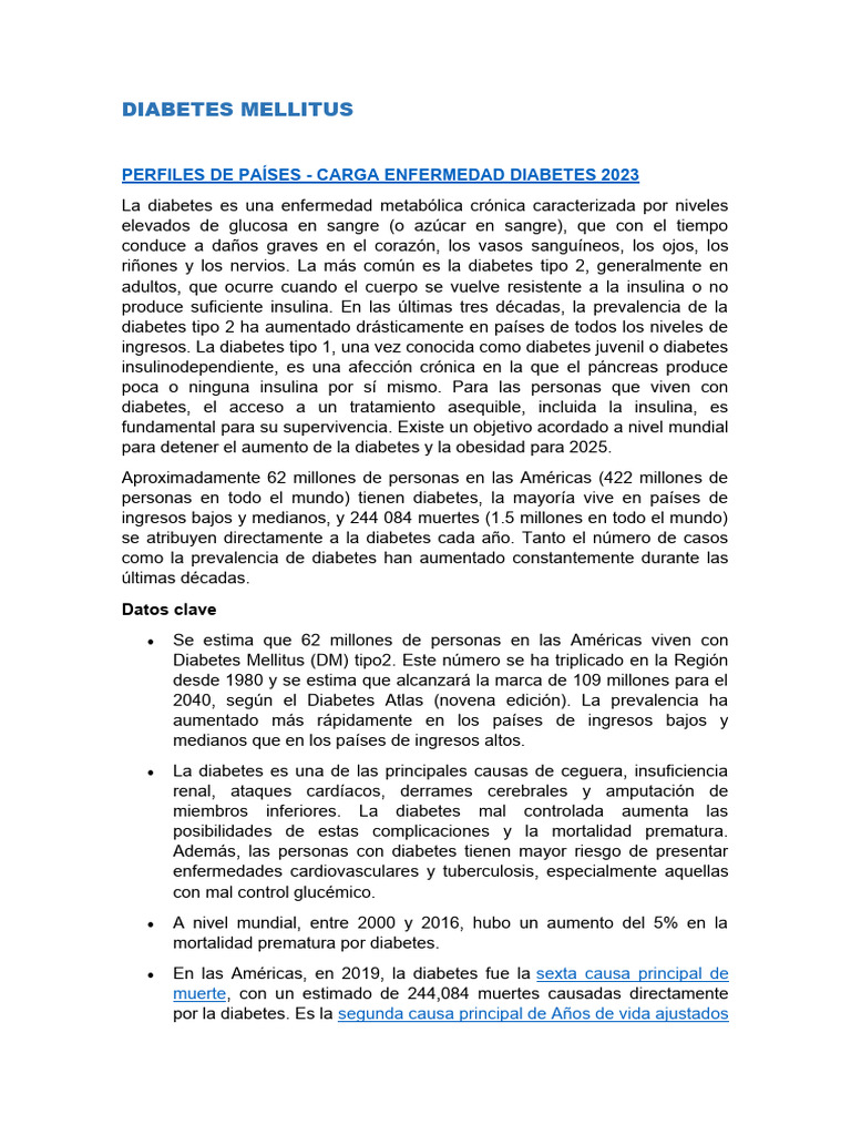 PERFILES DE PAÍSES - CARGA ENFERMEDAD DIABETES 2023