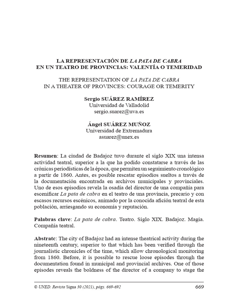 Palabras clave: La pata de cabra. Teatro. Siglo XIX. Badajoz. Magia.