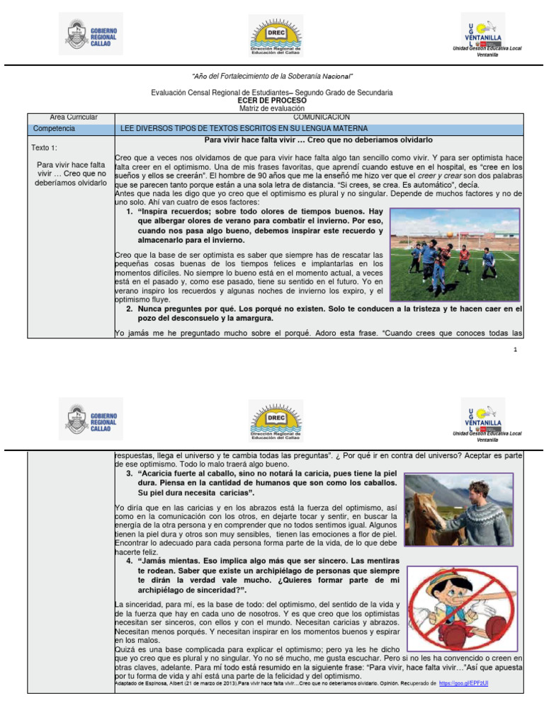 Matriz ECER LECTURA PROCESO 2DO SEC-2022