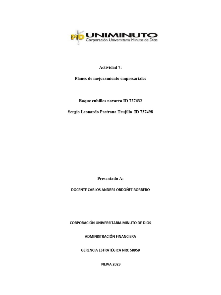 5. Formulen el o los objetivos del plan de mejoramiento con el que se pretende dar solución a dicho