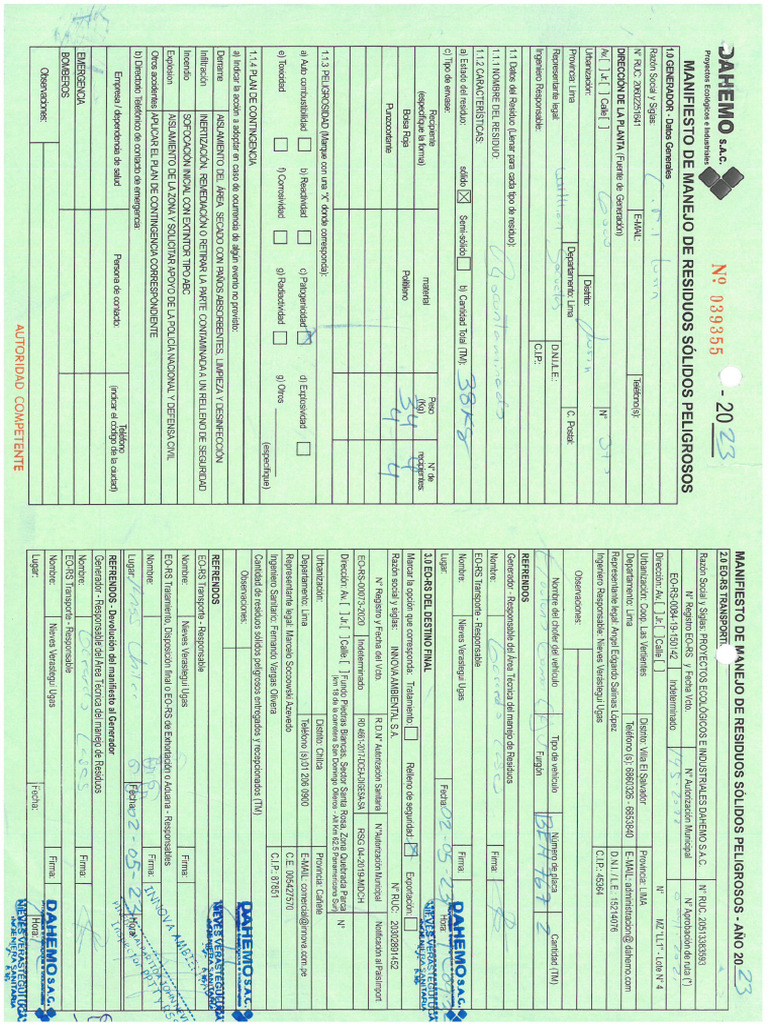 MANIFIESTO DE MANEJO DE RESIDUOS SOLIDOS PELIGROSOS - ANO 20.2.3