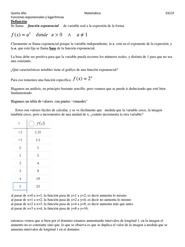 Es decir la característica saliente de la función exponencial de base 2 es que a medida que la función avanza