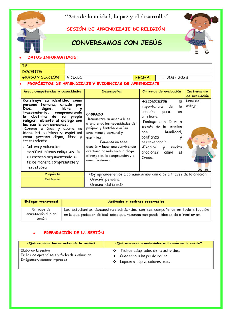 SESIÓN DE APRENDIZAJE DE RELIGIÓN