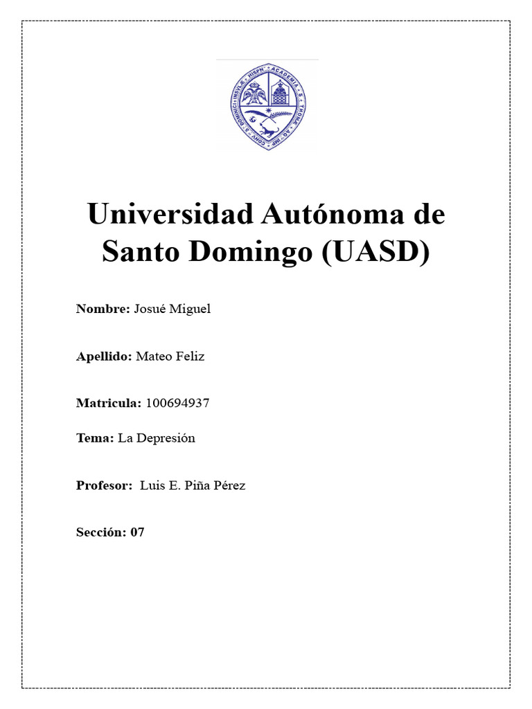 dormir, estudiar, comer y disfrutar de la vida. La depresió n