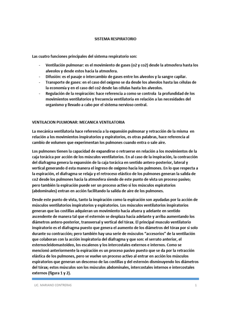 estructural del sistema respiratorio). Antes de que se genere la inspiración, el valor de la