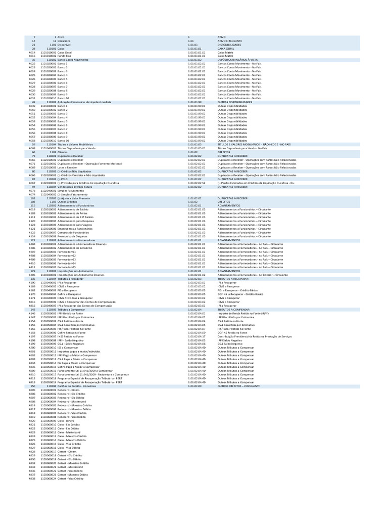49 110103 Aplicações Financeiras de Liquidez Imediata 1.01.01.99 OUTRAS DISPONIBILIDADES