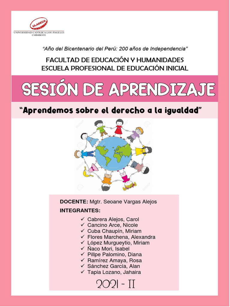 Propósito de la Sesión: Promover el derecho a la igualdad y el respeto a los demás.