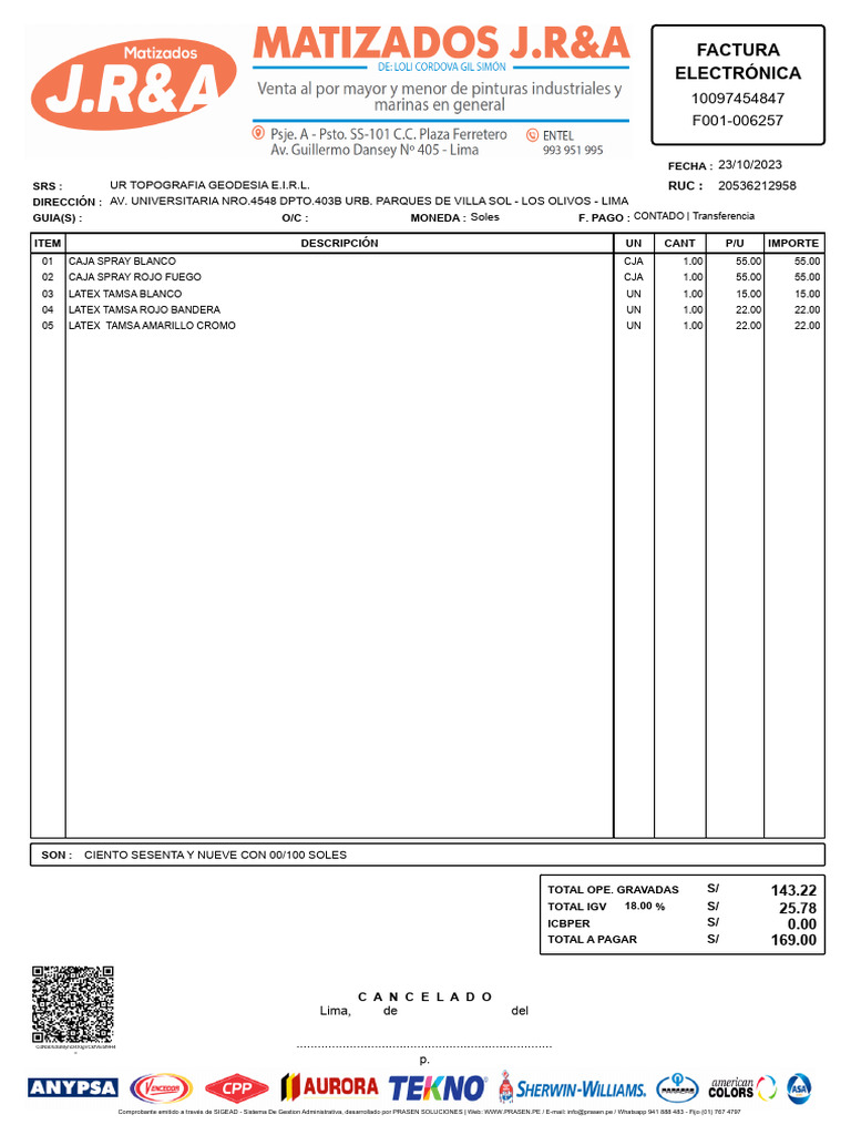 Comprobante emitido a través de SIGEAD - Sistema De Gestion Administrativa, desarrollado por PRASEN SOLUCIONES | Web: WWW.PRASEN.PE / E-mail: info@prasen.pe / Whatsapp 941 888 483 - Fijo (01) 767 4797