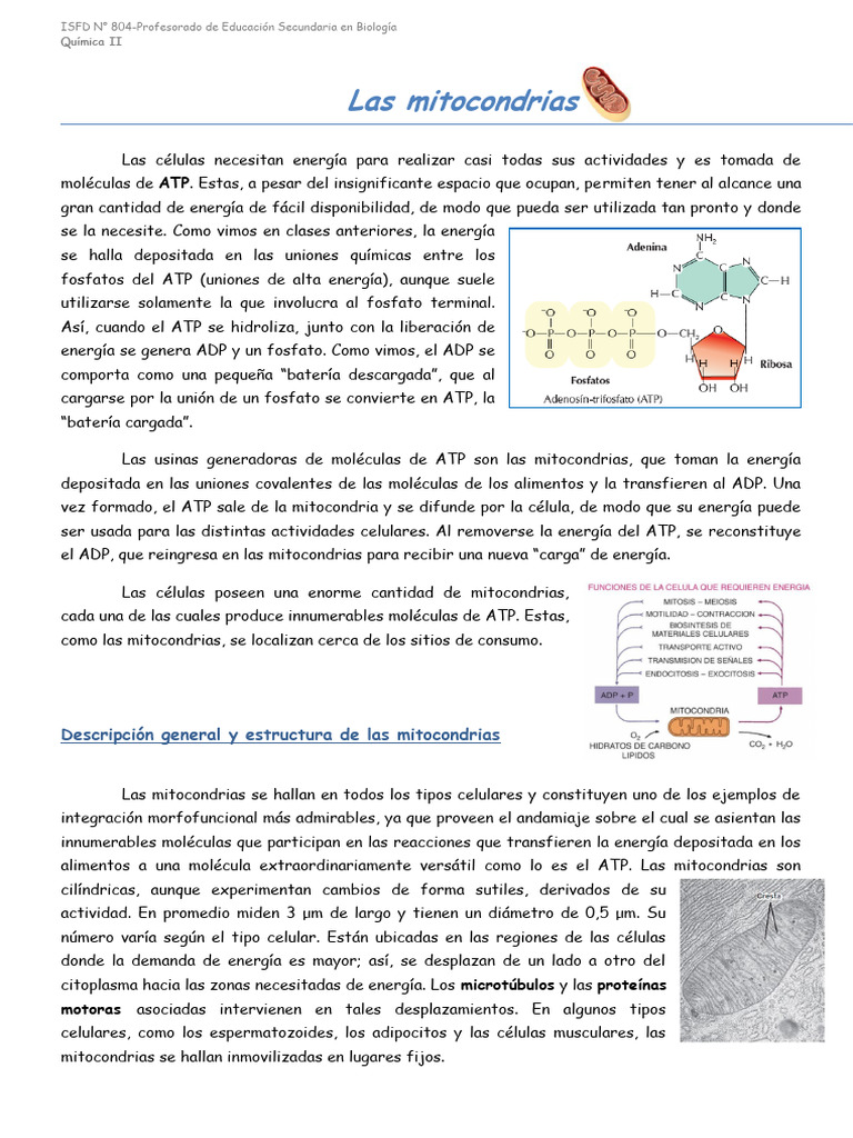 alimentos a una molécula extraordinariamente versátil como lo es el ATP. Las mitocondrias son