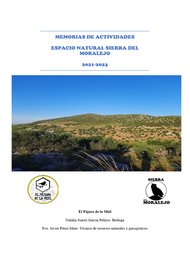 MEMORIAS DE ACTIVIDADES EN LA SIERRA DEL MORALEJO