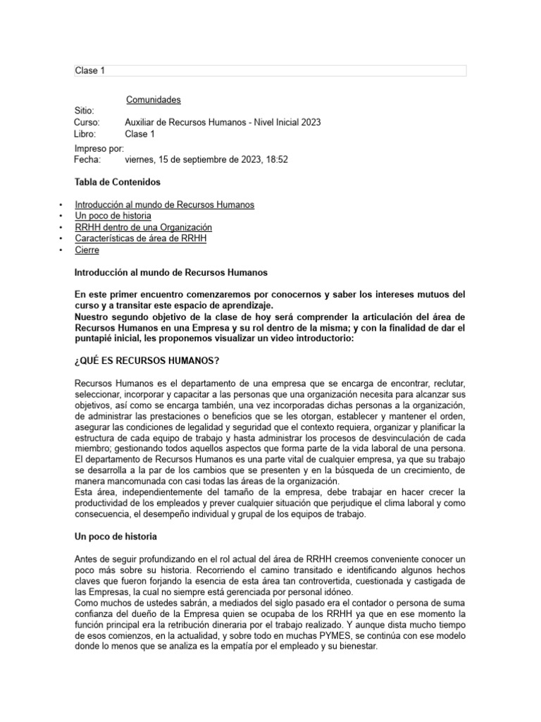 • Introducción al mundo de Recursos Humanos